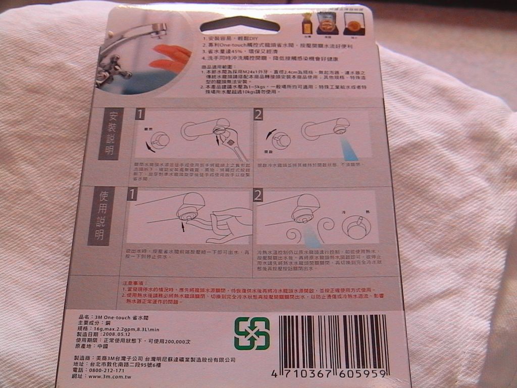 安裝3M省水閥的方式在包裝背面就清楚介紹了,實際安裝起來非常輕鬆,甚至單手就可以旋上去,最後再用板手拴緊即可,避免水壓過大而從旁邊洩漏。