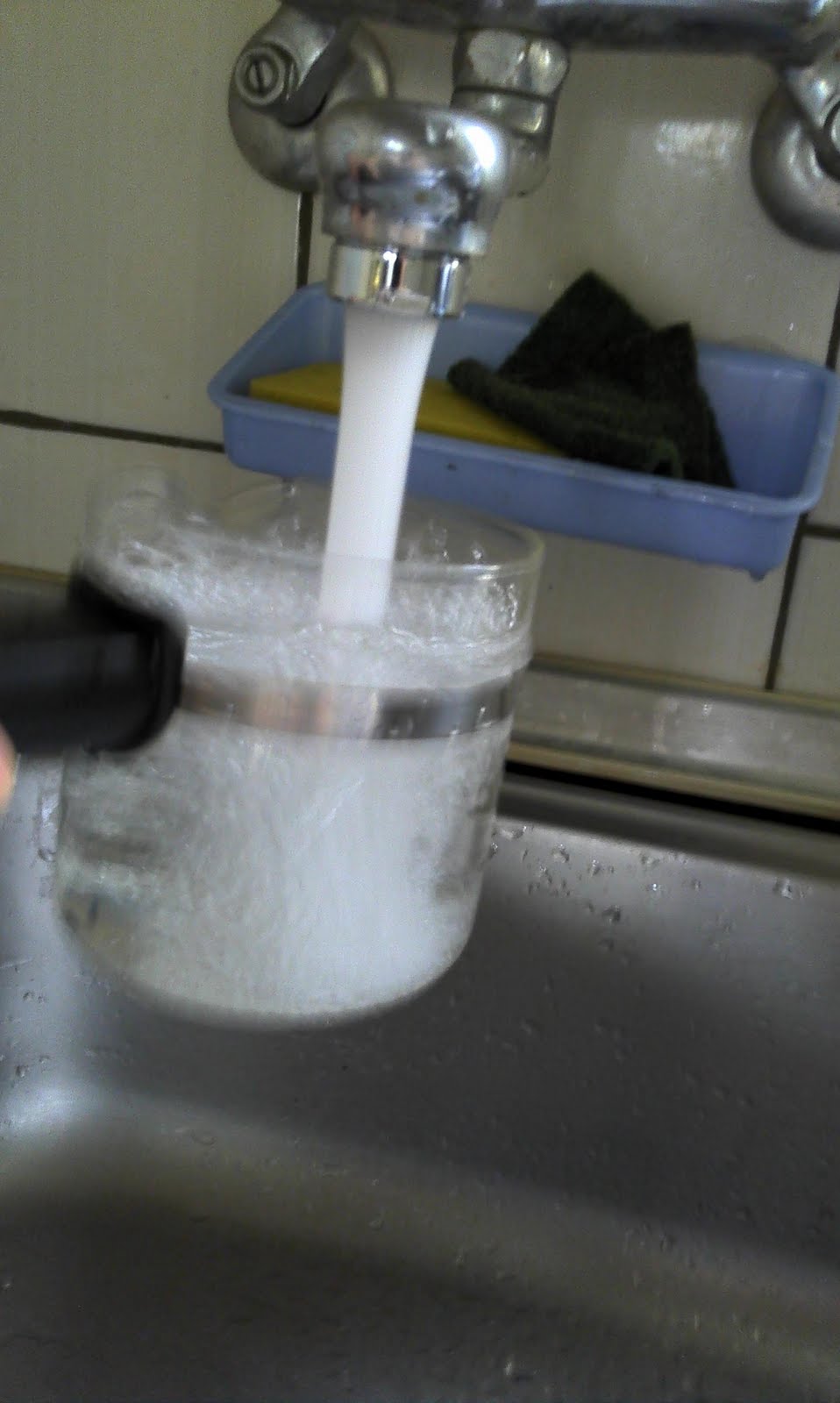 換裝3M省水閥之後,水量其實感覺一樣,但是重點來了,看到沒,水柱是白色的!